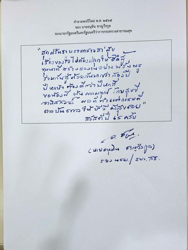 พรปีใหม่ 2565 | พระบาทสมเด็จพระเจ้าอยู่หัว และสมเด็จพระนางเจ้าฯ พระบรมราชินี พระราชทานบัตรอวยพรปีใหม่ ประจำปีพุทธศักราช 2565 แก่ปวงชนชาวไทย. คำอวยพรปีใหม่ 2565 สำหรับส่งให้กันในวันปีใหม่ 2022 พร้อมรูปสวัสดีปีใหม่ที่สอดแทรกคำอวยพร กลอนปีใหม่ เพราะๆ เอาไว้ส่งให้ญาติผู้ใหญ่ . ข่าววันนี้ สวัสดีปีใหม่ 2565 คำอวยพรปีใหม่ที่ทุกคนต้องส่งอวยพรให้คนที่รัก ทั้งพ่อแม่ เพื่อนสนิท เพื่อนที่ทำงาน แฟน และมากมาย . อวยพรปีใหม่ผู้ใหญ่ · ขออาราธนาคุณพระรัตนตรัย จงอวยชัยให้ทุกท่านมีสุขขี สุขสวัสดิ์ปลอดภัยตลอดปี 2565 สุขภาพแข็งแรงตลอดปีใหม่เทอญ · สุขสันต์วันปี . สวัสดีปีใหม่ 2022 หรือ วันขึ้นปีใหม่ 2565 (happy new year) เป็นเวลาที่ปฏิทินปีใหม่เริ่มต้น รวมกลอนปีใหม่ รวมคำอวยพรปีใหม่ สำหรับอวยพรปีใหม่.